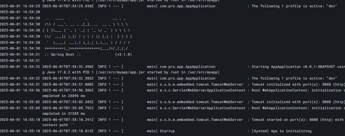 3분 뒤 앱이 재기동 되는 것을 확인할 수 있습니다.