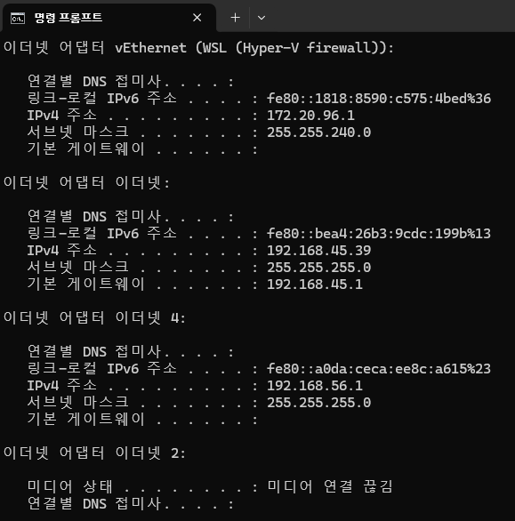 [2-3] 내 VM에 적용된 Host-Only Network 확인